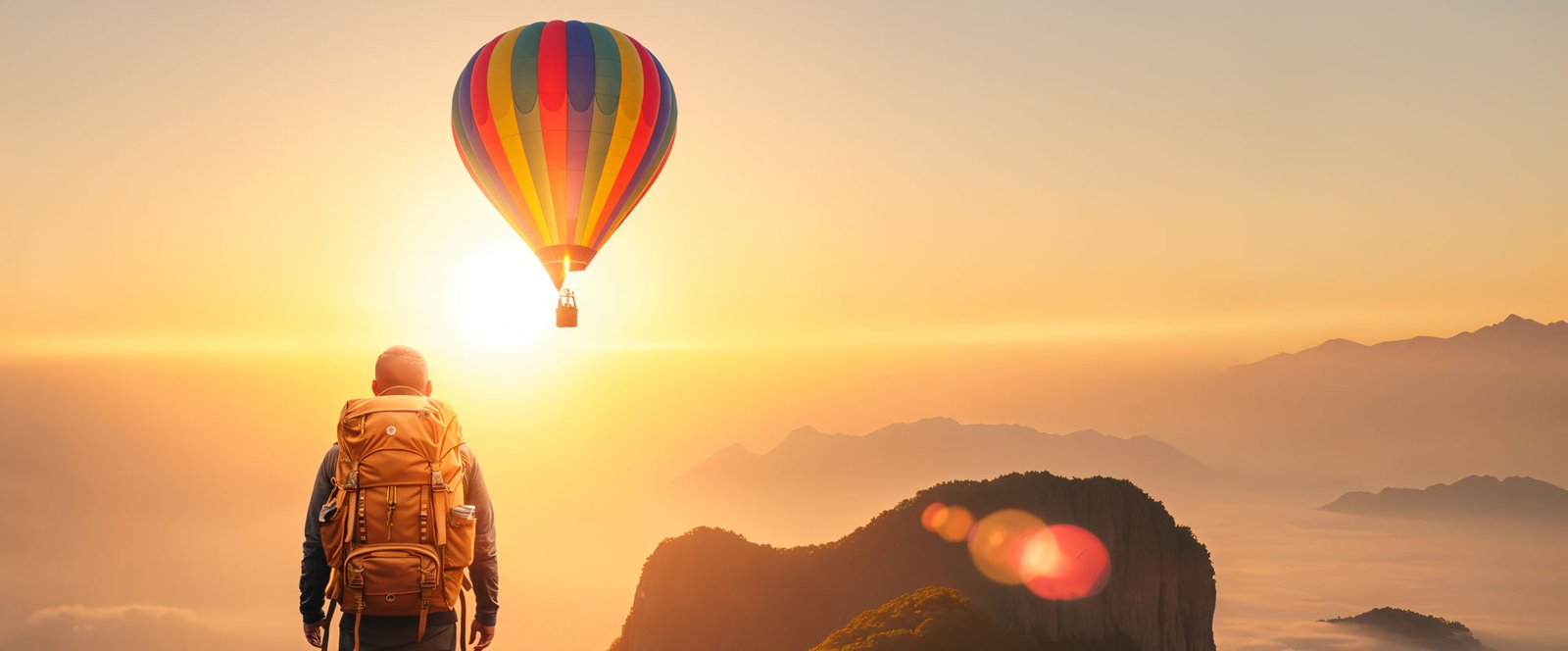 O balão de ar simboliza a liberdade de explorar sem fronteiras, enquanto a tipografia moderna e sofisticada reforça a credibilidade da marca.